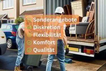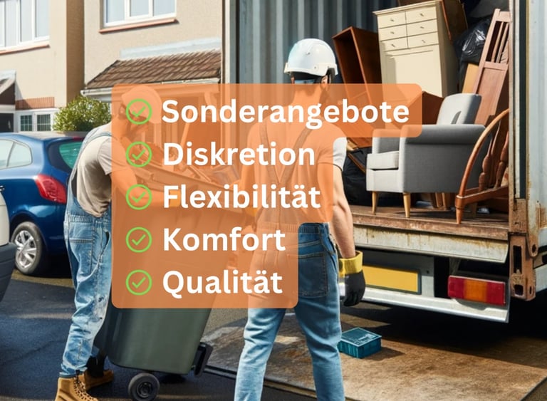 Anfahrt, Besichtigung und Angebotsabgabe sind grundsätzlich kostenlos & unverbindlich.AngebotInnerhalb 24 Stunden erhalten Sie von uns ein Festpreisangebot mit WERTANRECHNUNG.EntrümpelungWir räumen pünktlich, diskret und einfühlsam. Die Übergabe des Objekts erfolgt „besenrein„.